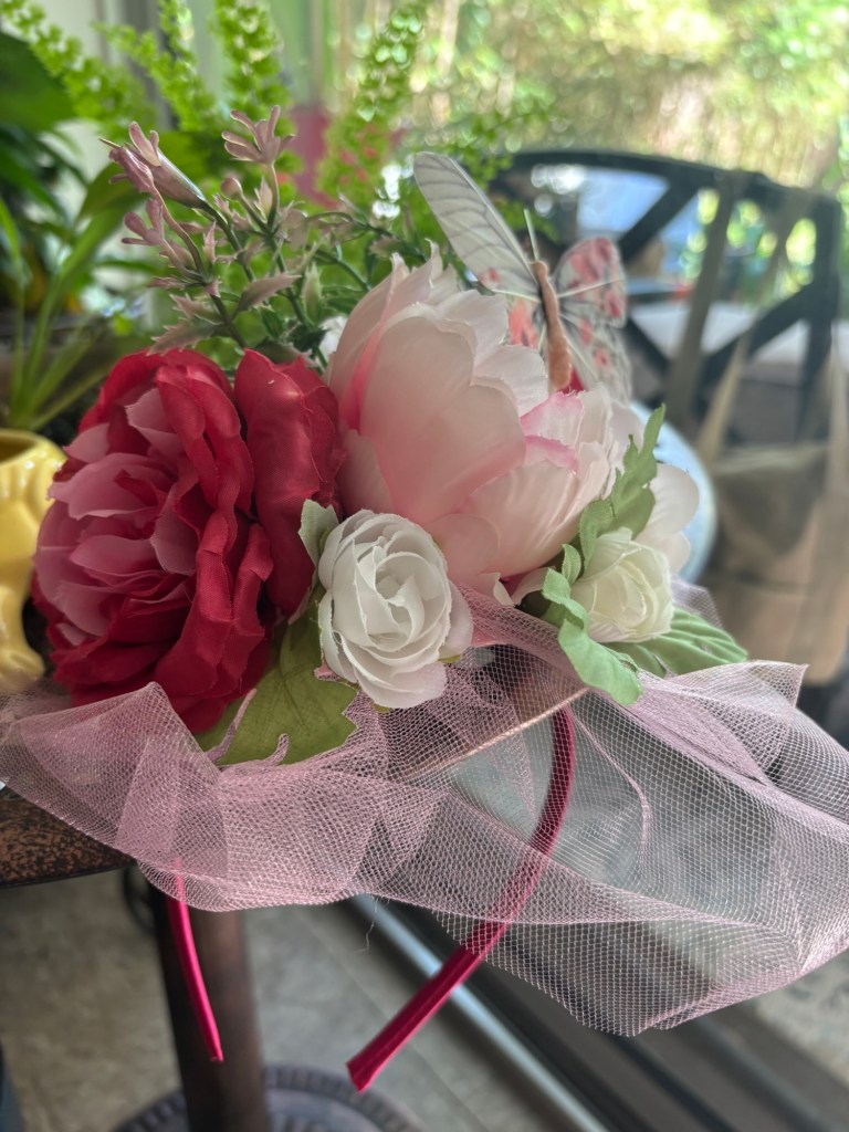 In this Bridgerton-inspired fascinator workshop, you’ll design a delicate headpiece featuring romantic roses, creamy florals, and subtle rhinestone sparkle. Think garden parties, handwritten letters, and the kind of beauty that feels soft rather than showy.